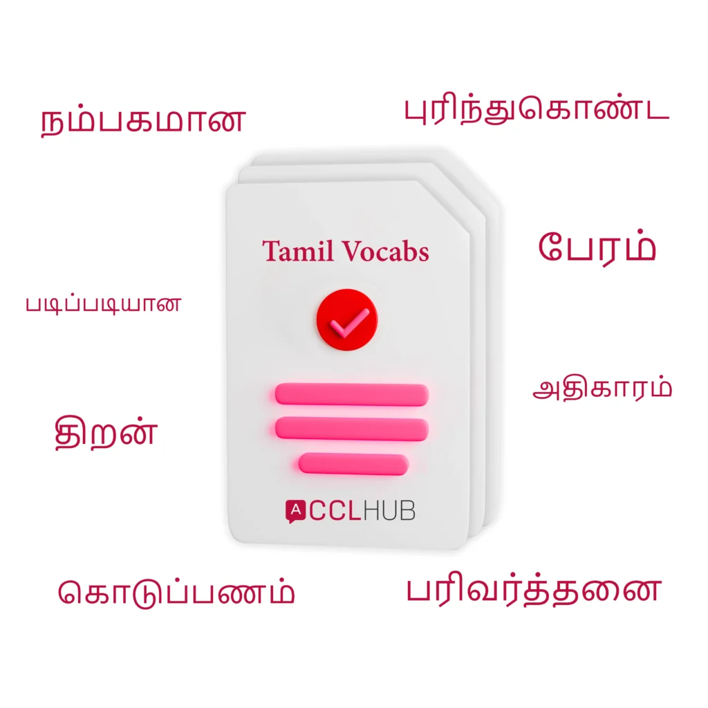 Master every essential Tamil word and phrase used in real NAATI CCL dialogues with our comprehensive Tamil vocabulary resource. This free English to Tamil word list includes topic-wise translations, practical phrases, and exam-specific terminology designed for NAATI success.